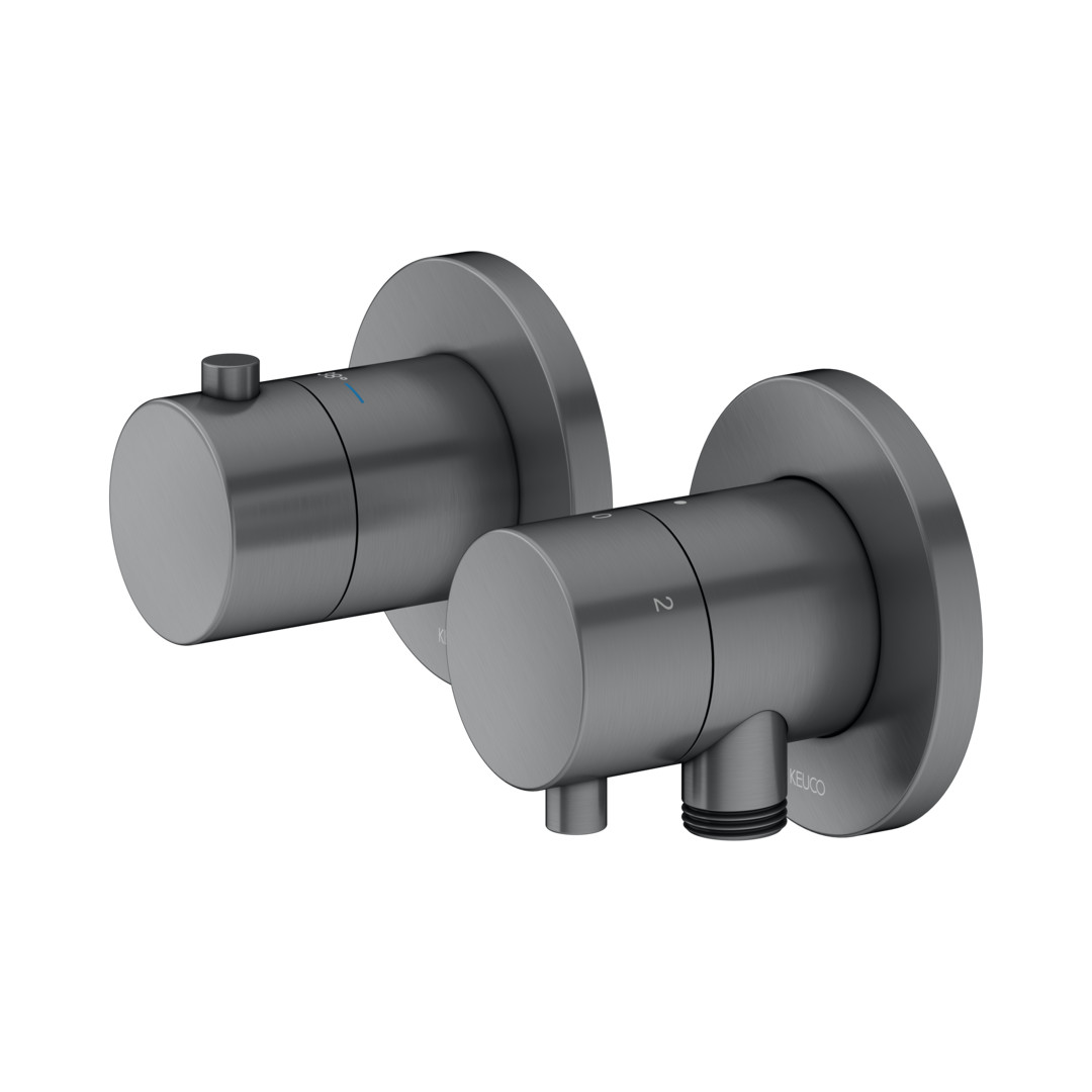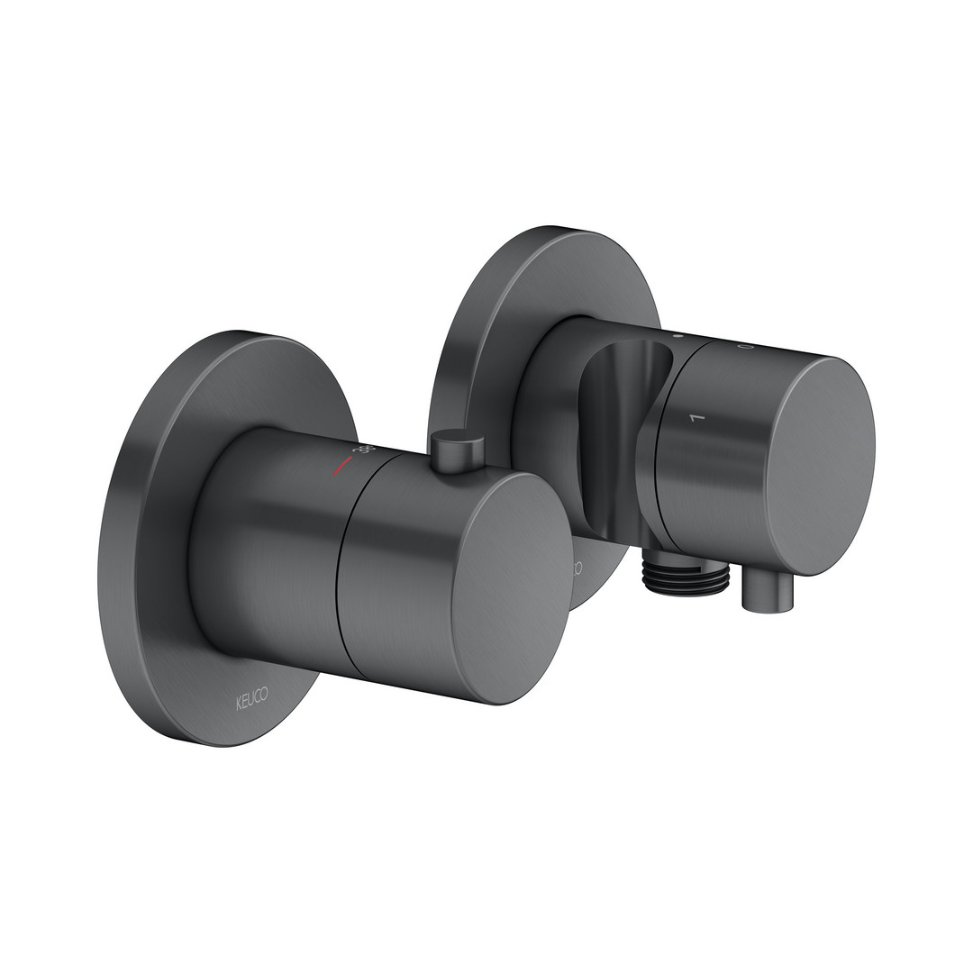KEUCO Fertigmontageset Edition 400 UP-Thermostatarmatur, Schlauchanschluss, Brausehalter, für 3 Verbrauch, schwarzchrom gebürstet KE51553131231