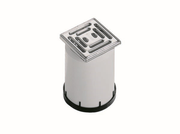 passend zu den Ablaufgehäusen 40, 42, 46, den Balkonablaufgehäusen und Entwässerungselementen für Attikaabläufe, sowie zu den Aufstockelementen 85, Aufsatzverlängerung Polypropylen, verlängerbar mit HT-Rohr DN 100, Rahmen Edelstahl 1.4301, Belastungsklasse K 3 (300 kg)