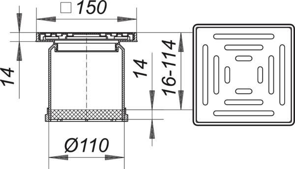 Dallmer Aufsatz Serie 10 KE 10, Rost Edelstahl 1.4301, 150x150mm