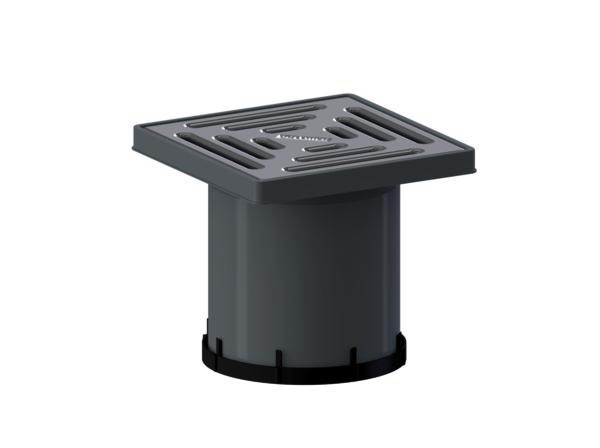 passend zu den Ablaufgehäusen 40, 42, 46, den Balkonabläufen und Entwässerungselementen für Attikaabläufe, sowie zu den Aufstockelementen 85, Aufsatzverlängerung Polypropylen, verlängerbar mit HT-Rohr DN 100, Rahmen ABS, Belastungsklasse K 3 (300 kg)