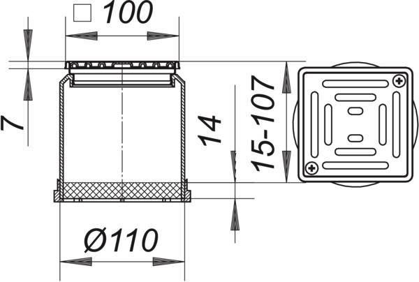 Dallmer Aufsatz Serie 10 EN 10, Rost Edelstahl 1.4301, verschraubt, 100x100mm