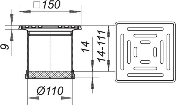 Dallmer Aufsatz Serie 10 SEC 10, Rost Edelstahl 1.4301, 150x150mm