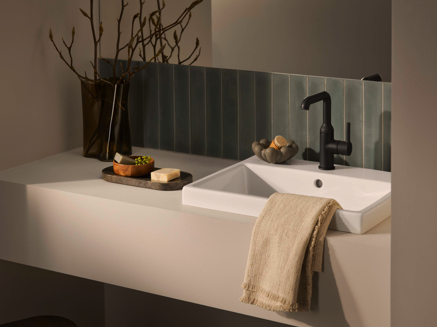 HANSA Waschtisch-Einhebelmischer HANSAVANTIS Style Pinhebel, ohne Ablaufgarnitur, Ausladung 147mm, matt-schwarz