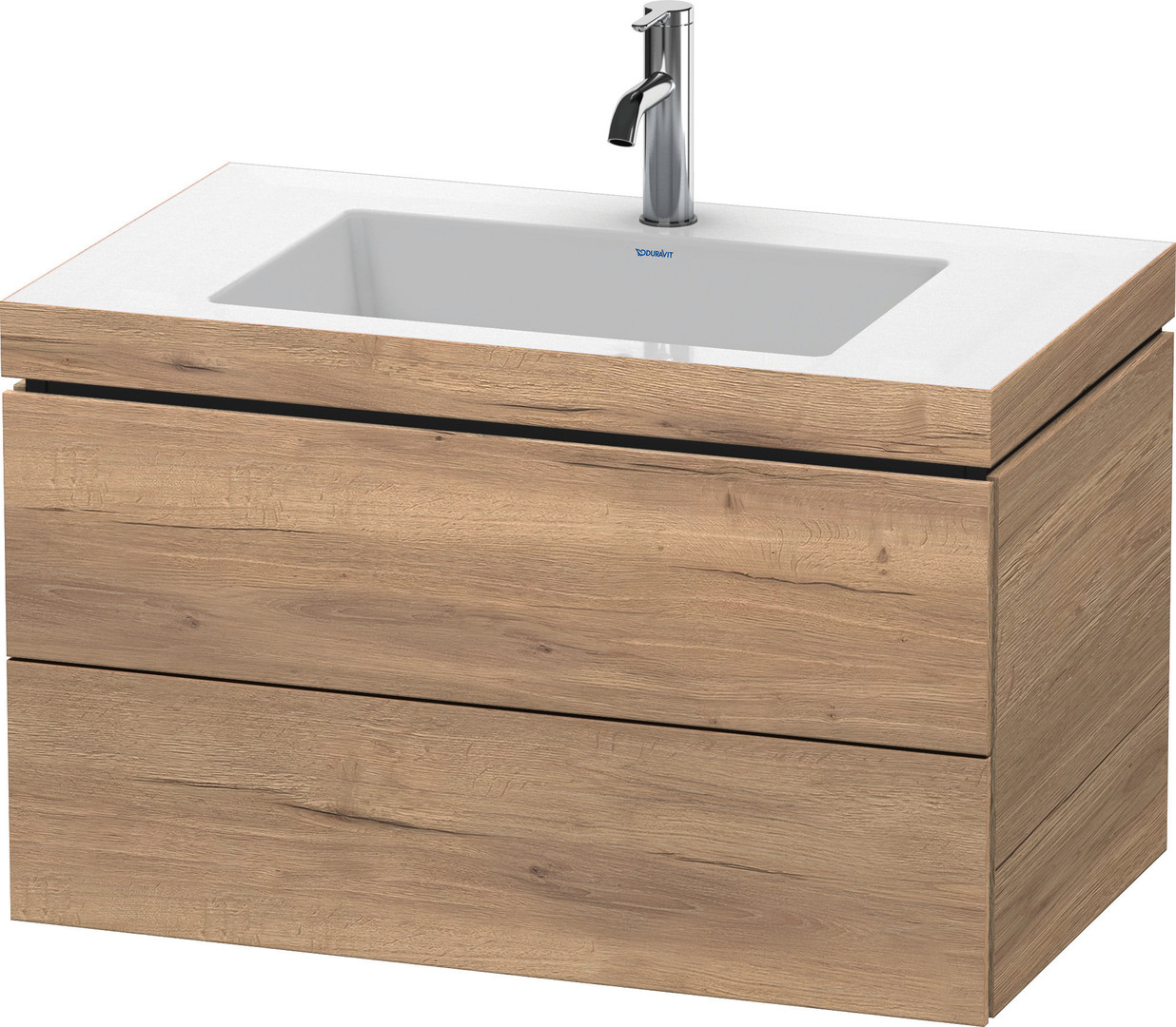 Duravit Waschtisch-Unterschrank c-bonded L-Cube 80 x 48 cm, 1 Hahnloch, eiche marmoriert, 2 Schubkästen, wandhängend