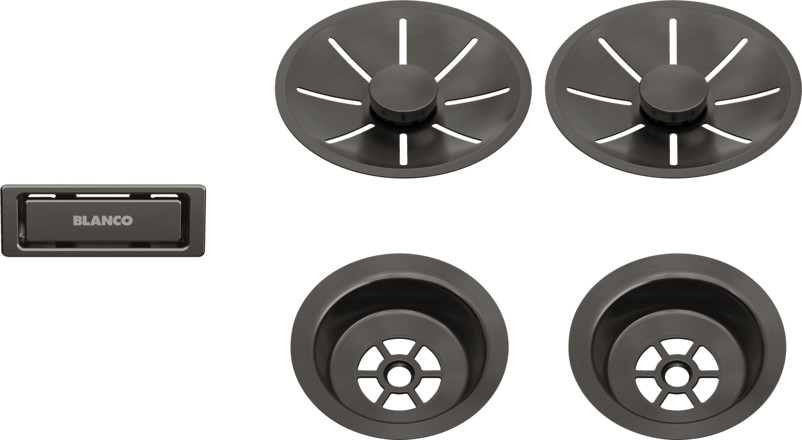 Blanco Ab- und Überlaufset satin dark steel, für Doppelbecken BL206901