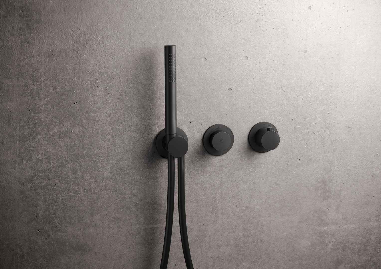 Herzbach Fertigmontageset MODUL7 PUSH Thermostat, mit Stabhandbrause, 1 Verbraucher, schwarz matt