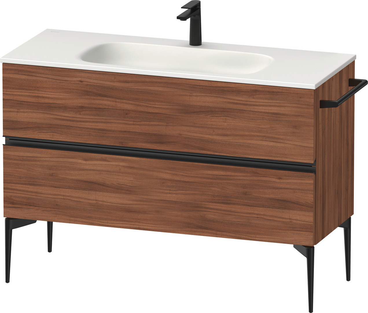 Duravit Waschtisch-Unterschrank bodenstehend Sivida 121 x 59,2 x 47,7 cm, 2 Schubkästen, Nussbaum Natur, Griff diamantschwarz