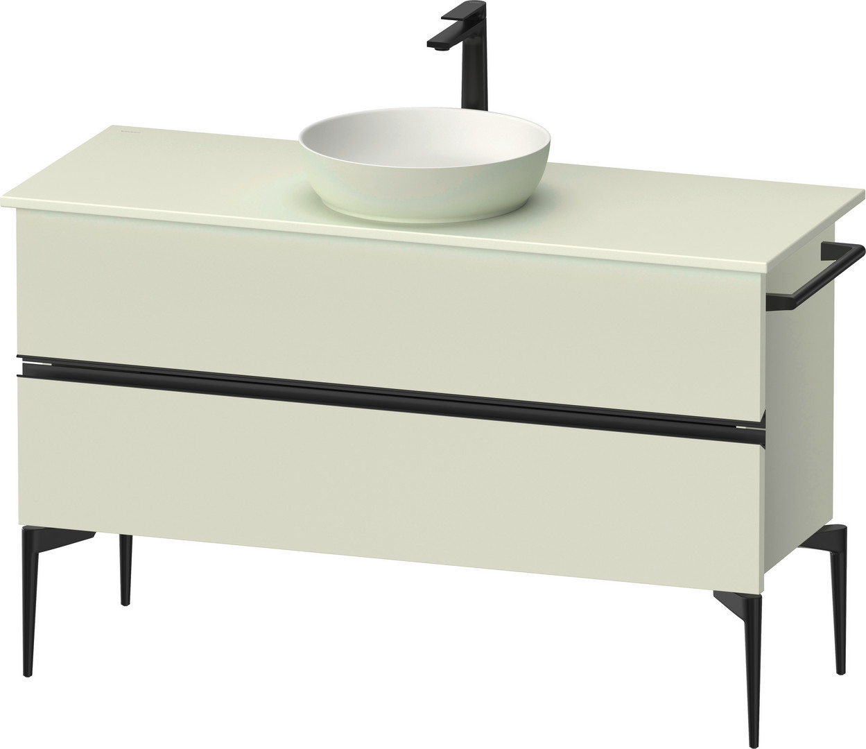 Duravit Konsolenwaschtischunterbau bodenstehend Sivida 124,5 x 54,8 x 47,5 cm, Blassgrün Matt, 2 Schubkästen, Griff diamantschwarz