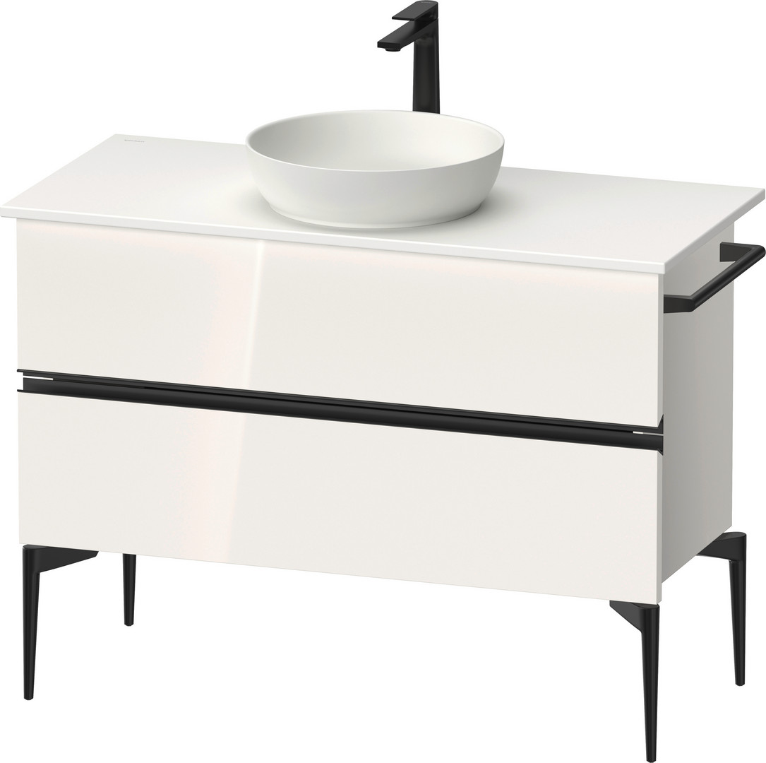 Duravit Konsolenwaschtischunterbau bodenstehend Sivida 104,5 x 54,8 x 47,5 cm, Weiß Hochglanz, 2 Schubkästen, Griff diamantschwarz