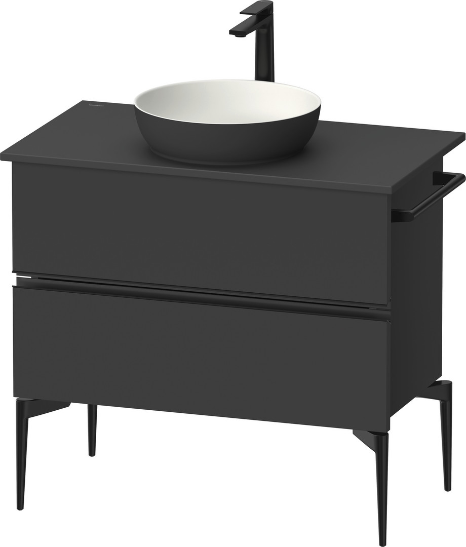 Duravit Konsolenwaschtischunterbau bodenstehend Sivida 84,5 x 54,8 x 47,5 cm, Graphit Matt, 2 Schubkästen, Griff diamantschwarz