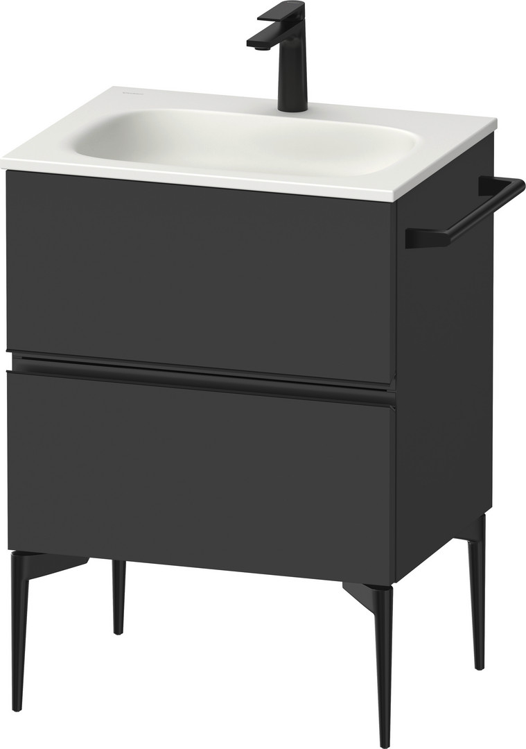 Duravit Waschtisch-Unterschrank wandhängend Sivida 61 x 59,2 x 47,7 cm, 2 Schubkästen, Graphit Matt, Griff diamantschwarz