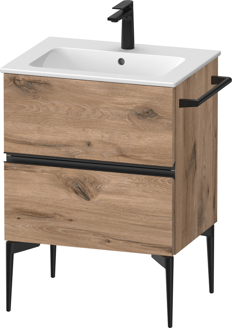 Duravit Waschtisch-Unterschrank wandhängend Sivida 61 x 59,1 x 47,7 cm, 2 Schubkästen, Eiche Marmorie, Griff diamantschwarz
