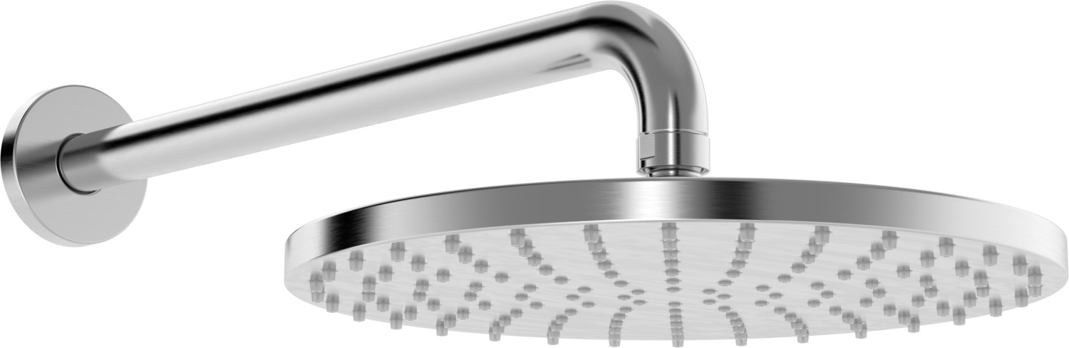 Heißwasserversorgung max. 90°C, Arbeitsdruck 0,5-5 bar, Durchfluss bei 3 bar (mit Regler) 12 l/min, Anschlussgröße G1/2, Kopfbrausengröße Ø 250 mm, Ausladung 348 mm, Geräuschklasse 0,2 l/s II (ISO 3822), Material Messing, Kopfbrause, schwenkbares Kugelgelenk, Anti-Kalk-Technik Außengewinde, Abdeckung(en), 1-strahlig