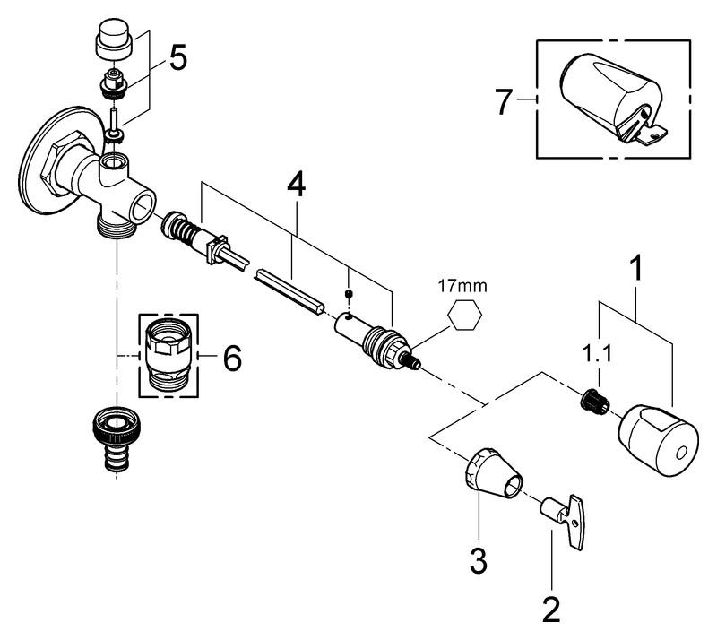 GROHE Außenwandventil-Bausatz Eurotec mit Rohrbelüfter Bauform C, 1/2", chrom FG41206000