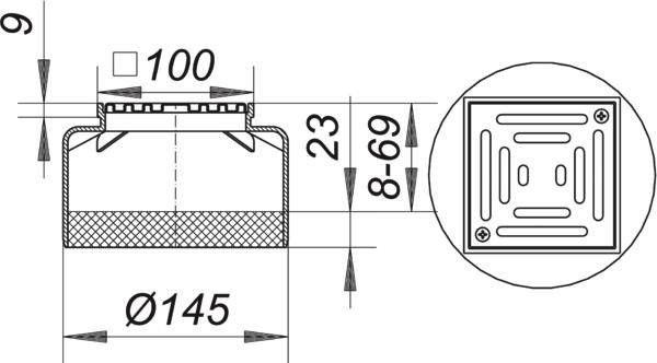Dallmer Aufsatz Serie 15 EN 15, Rost Edelstahl 1.4301, verschraubt, 100x100mm DA500083