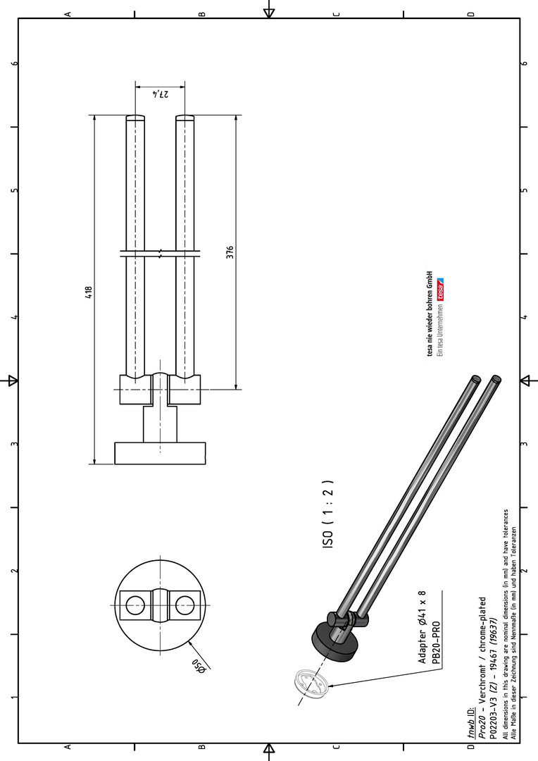 nie wieder bohren Handtuchhalter PRO 020 V3 50 x 50 x 418 mm, zweiarmig, starr, Zinkdruckguss, Edelstahl, hochglanzverchromt