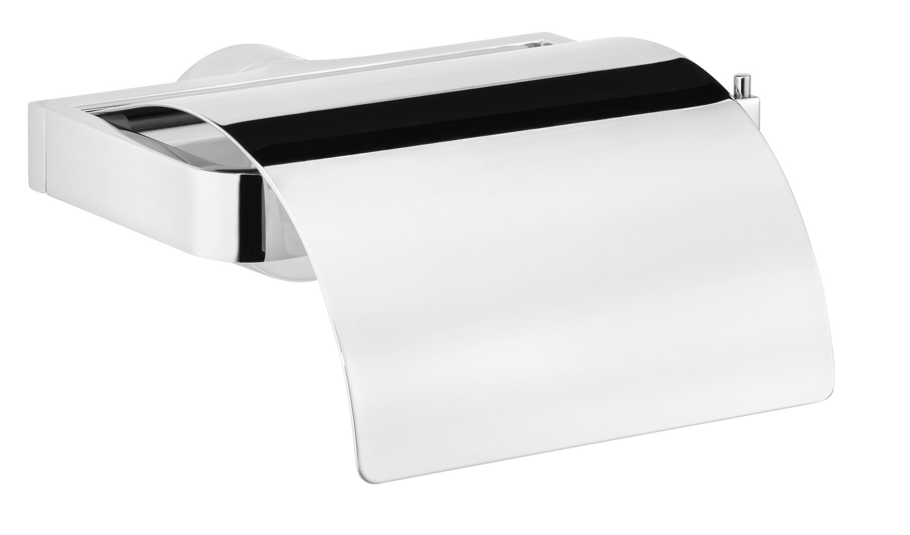 nie wieder bohren Papierrollenhalter Plan Smart chrom 140 x 50 x 160 mm, Zinkdruckguss, hochglanzverchromt, mit Deckel, Rosette chrom