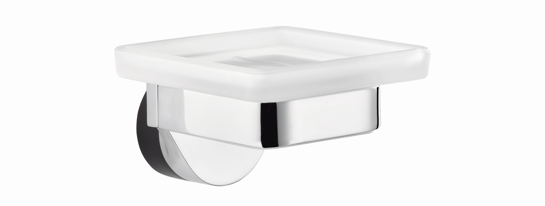 nie wieder bohren Seifenhalter Plan Smart 100 x 65 x 114 mm, Zinkdruckguss, hochglanzverchromt, Glas satiniert