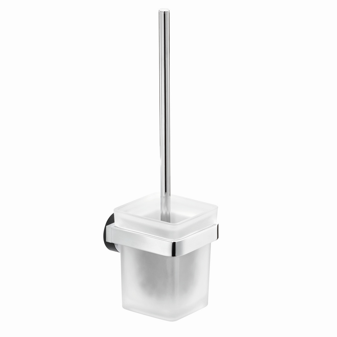 nie wieder bohren Toilettenbürstengarnitur Plan Smart 103 x 385 x 129 mm, hochglanzverchromt, Wandplatte schwarz, Bürstenkopf Kunststoff schwarz