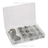 HAAS Schlauchklemmen-Sortiment W5, Edelstahl, V4A, 74 Stück, PP-Box transparent